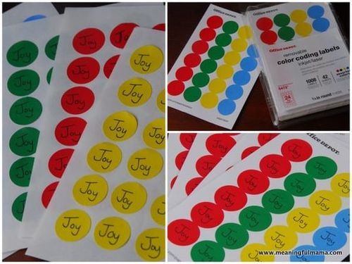 Joy Game: Write the word "Joy" on small blank stickers (garage sale dot stickers or similar). Give everyone a sheet of joy stickers and play a game of tag! See who can stick the most joy to each other!